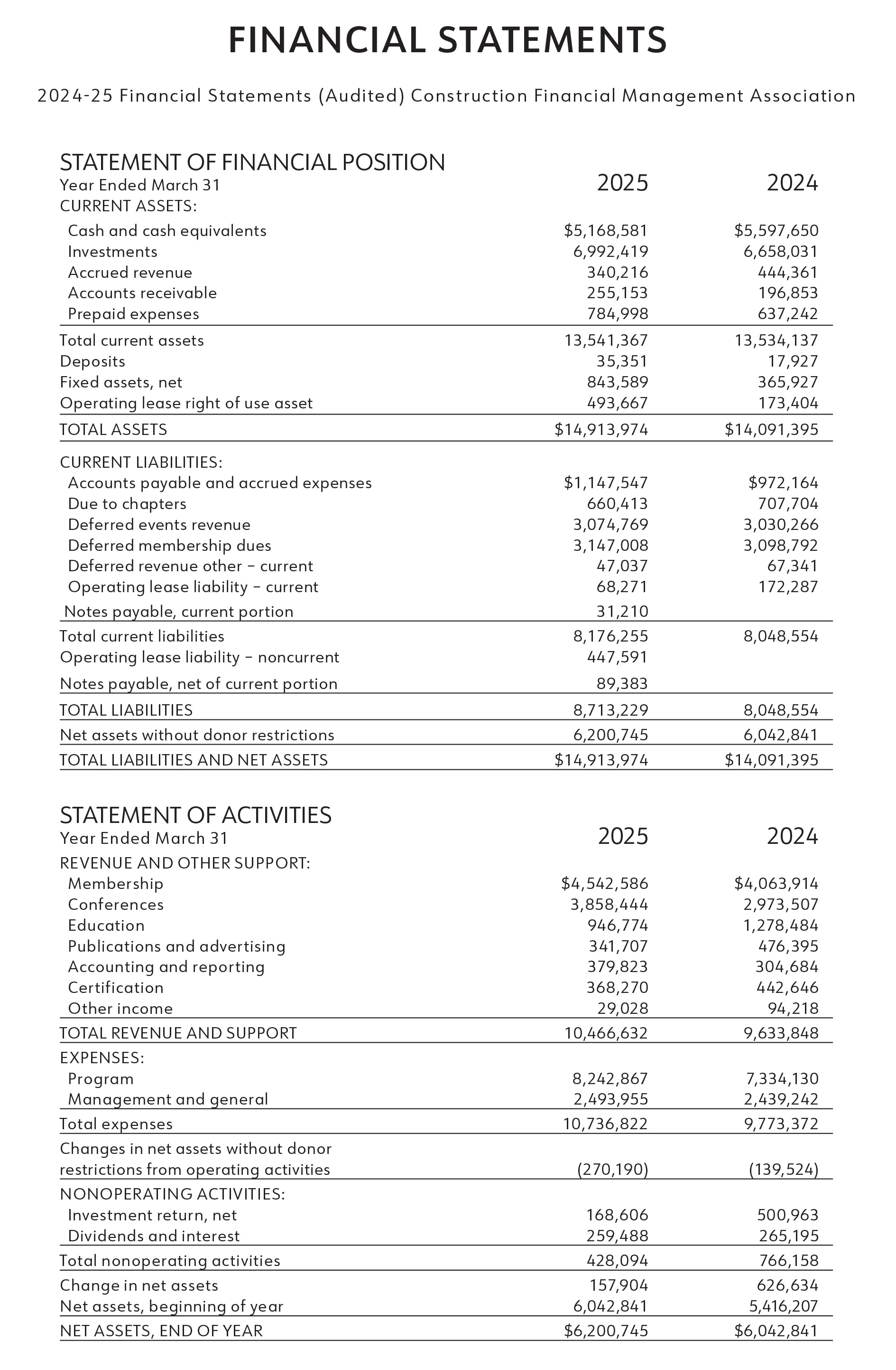 The capital budget for FYE 2025 was primarily focused on completing the technology transition. The goal of this initiative is to provide CFMA members with a more intuitive platform to navigate not only CFMA’s current offerings but also their past participation in one easy-to-see interface.